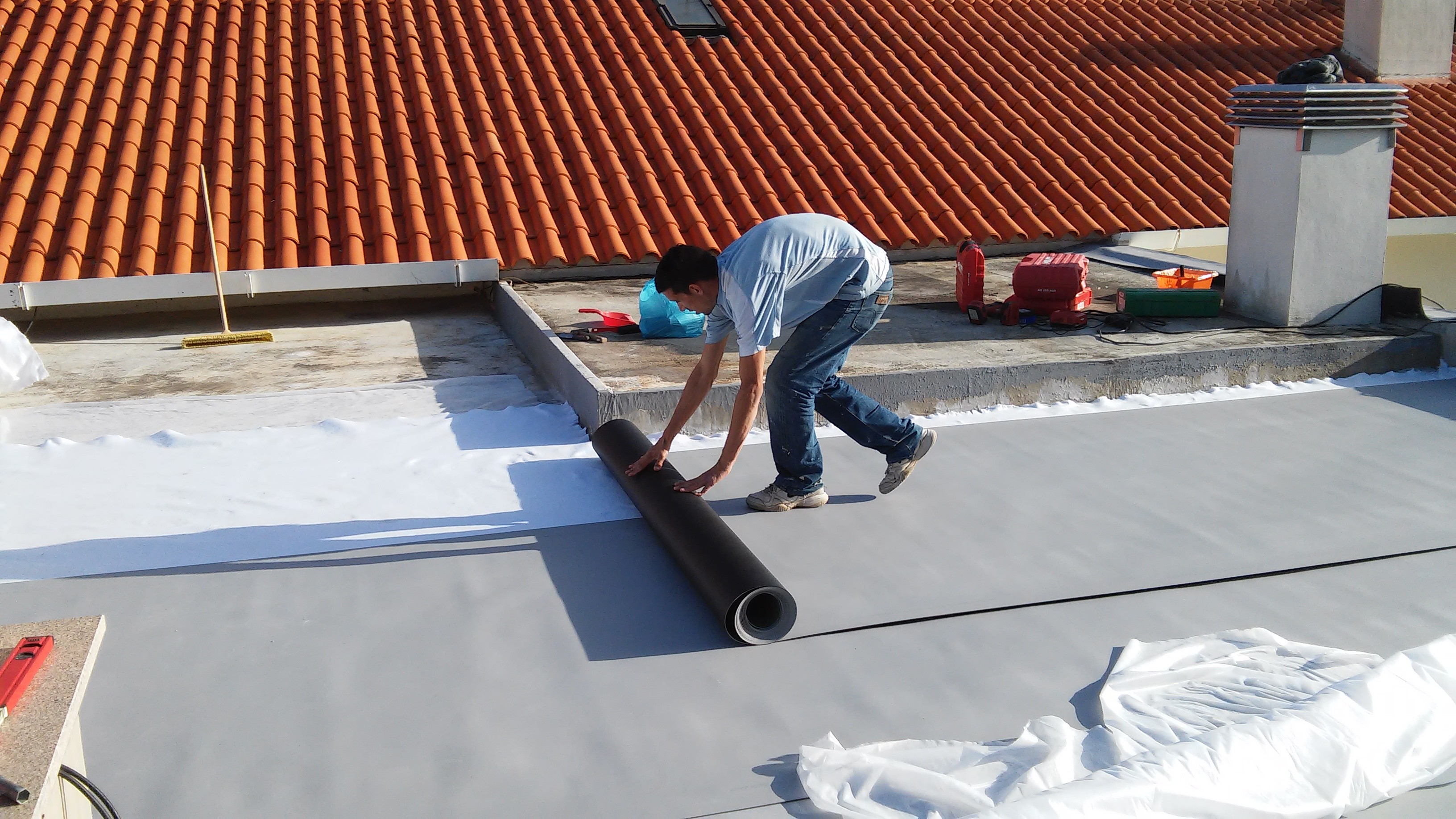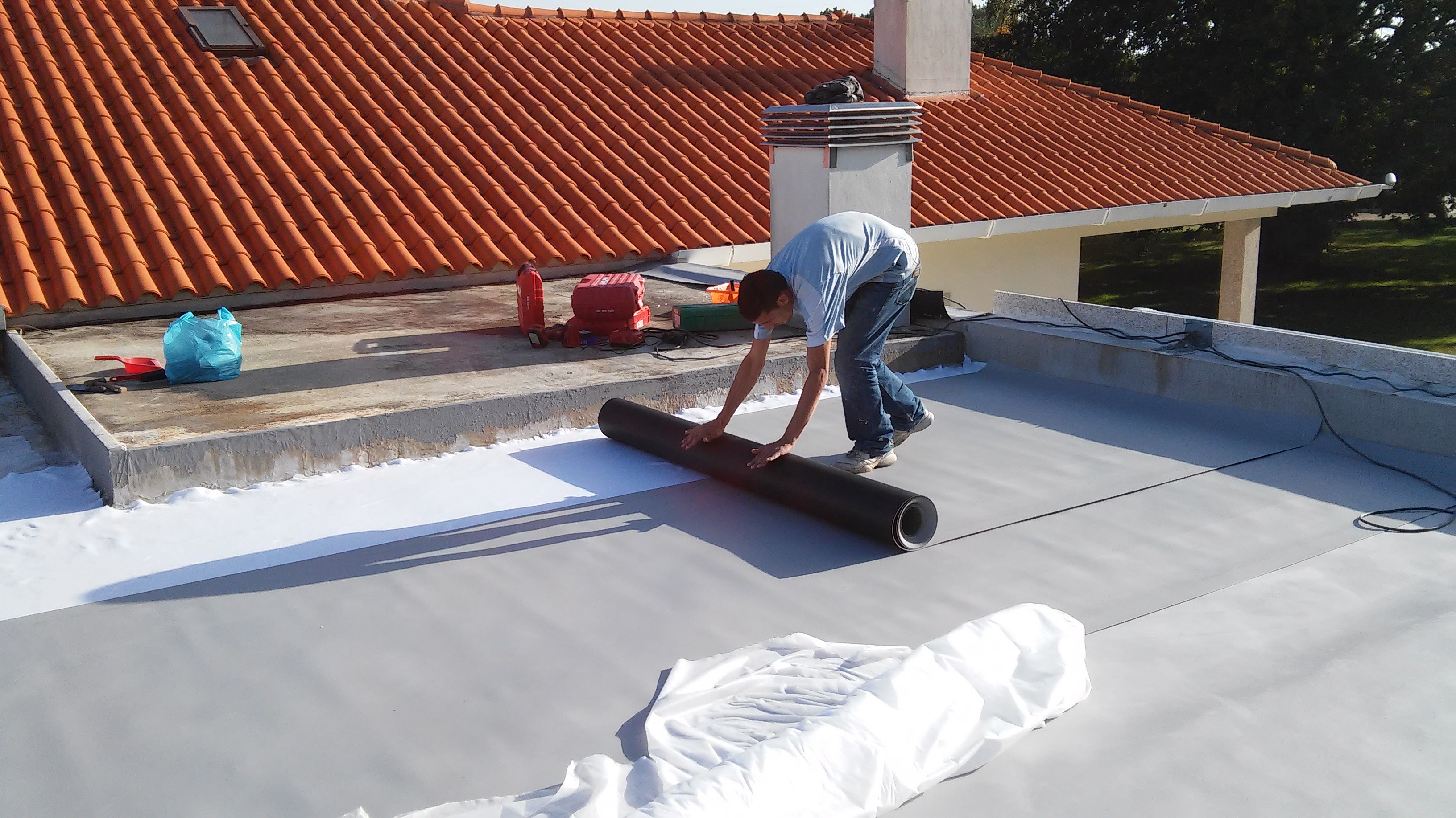 Impermeabilização de cobertura para moradia. Foram aplicados para esta obra tela Austroplan FW-FPO de 1,5mm de cor cinza, geotextil de 300gr e barreira de vapor.